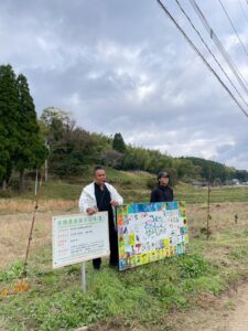 寒空の下でも、陽気な音楽が流れてくるような明るい笑顔で迎えてくれたのは、鳥越靖基(トリゴエヤスキ)さんと有機農業の研修真っ最中という熊本農業大学生の男の子。