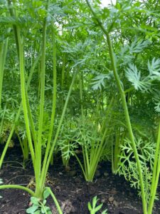 次はニンジンの畑。一面に生い茂るニンジンの葉が風に吹かれて、まるで草原。見れば見るほど、寒い中でも元気いっぱいなのが伝わってくる。里芋の時と同じように、ニンジンを引くとすっと抜きやすい。土を触ってみるとサラサラしていて、いい具合に湿っていて、まさに土の団粒化。微生物がいい働きをしてくれているのだろう。